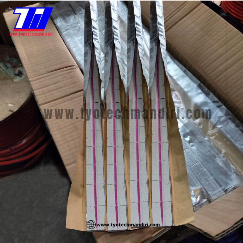The tape is composed of ceramic tiles attached to an aluminum tape.