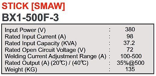 MESIN LAS STICK [SMAW] BX1-500F-3 HUGONG